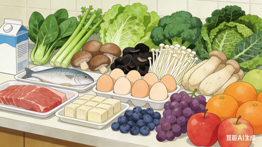 多选深色蔬菜、菌藻类、豆类,荤菜优选鱼虾类、去皮禽类等,合理搭配薯类、杂粮等主食。